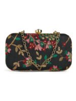 Black & Goldembroidered box clutches Has shoulder strap, 1 main compartment with twist closure