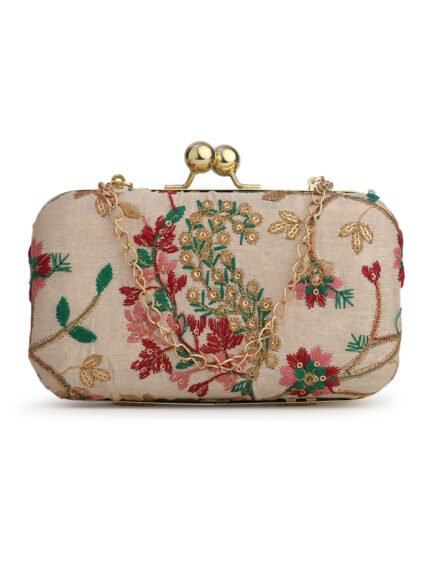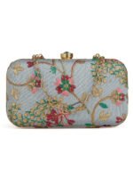 Blue & Goldembroidered box clutches Has shoulder strap, 1 main compartment with twist closure
