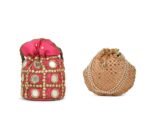 Combo – Designer Embroidered Potli Bag – Golden & Gold
