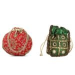 Home W_Bags Potlis PK 2 Combo – Designer Embroidered Potli Bag – Red & Gold