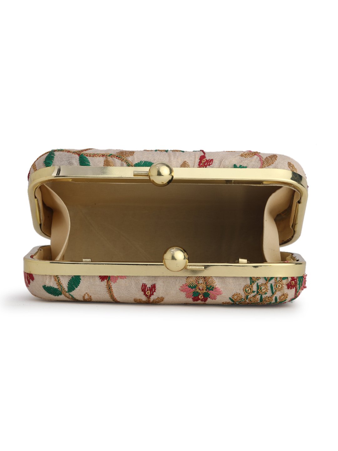 Home W_Bags Clutches Off White & Gold Embroidered Box Clutches For Girls and womens(Multicolor)